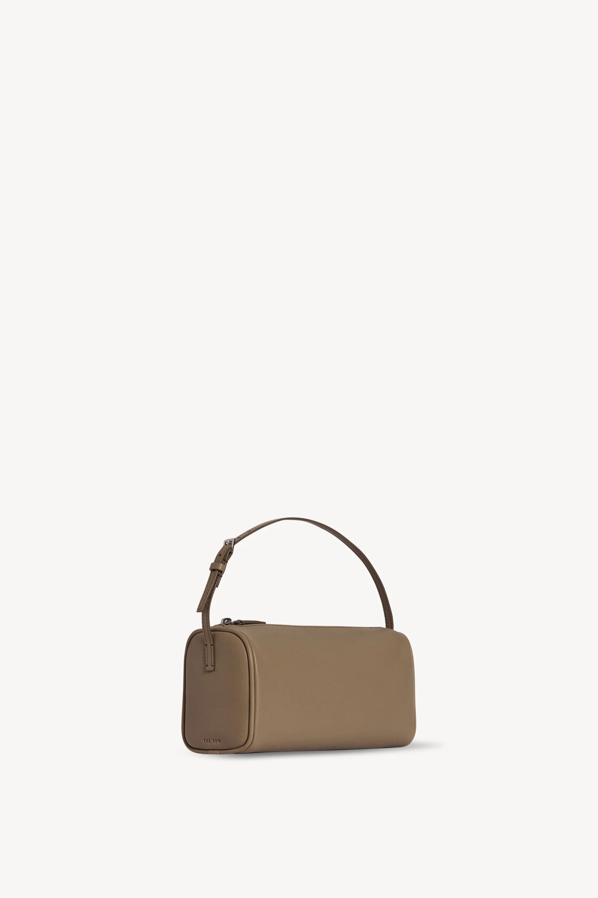 Top handle bag in smooth nappa leather with softly rounded edges, leather piping, and adjustable slim leather strap.