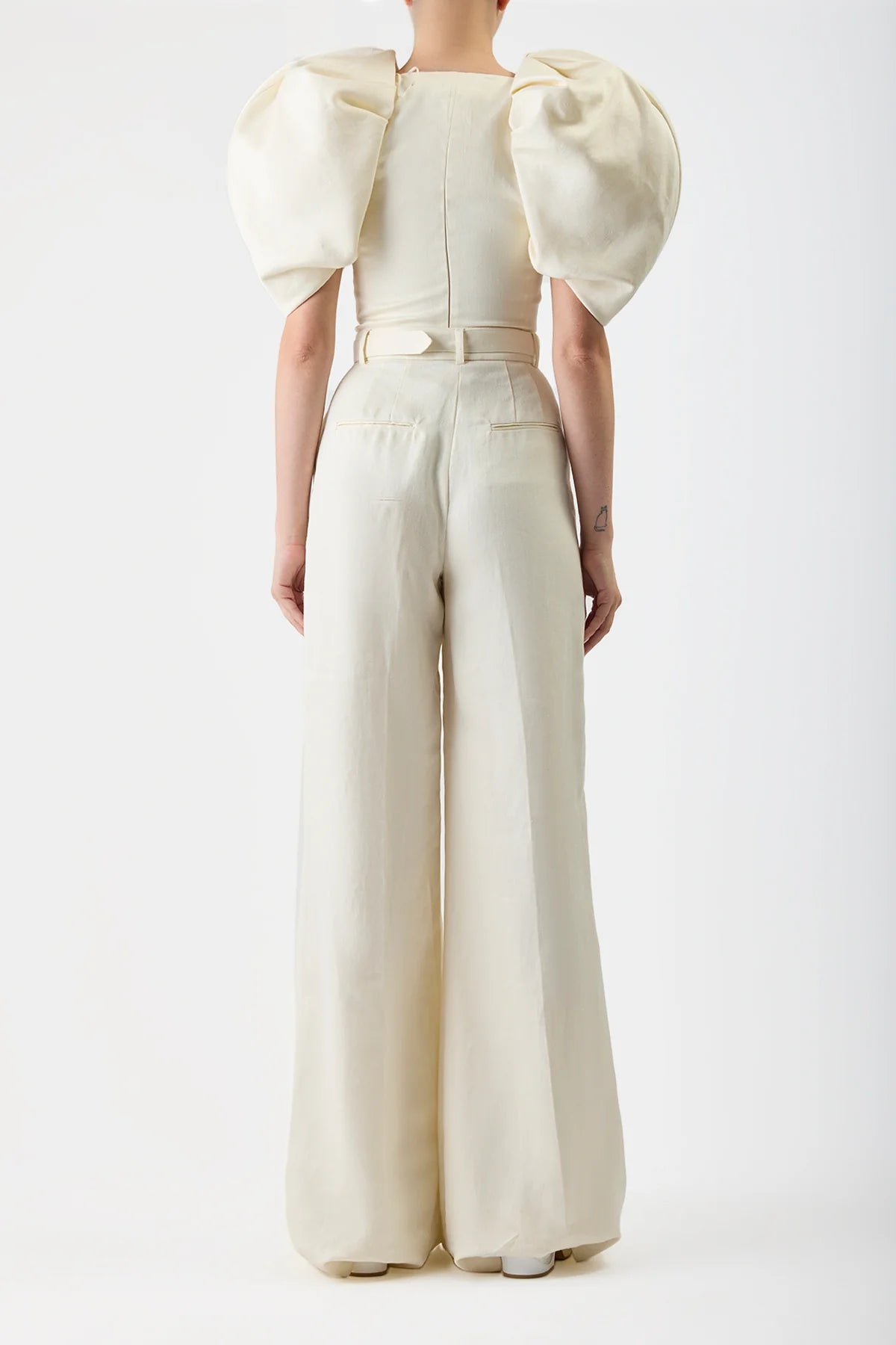 A dramatic, beautifully formed, and sculpted full sleeve is contrasted against a fitted bodice shape in the Ceri top. The rich textured linen slub adds to the perfect synergy of all elements, creating a perfectly bold, playful piece.