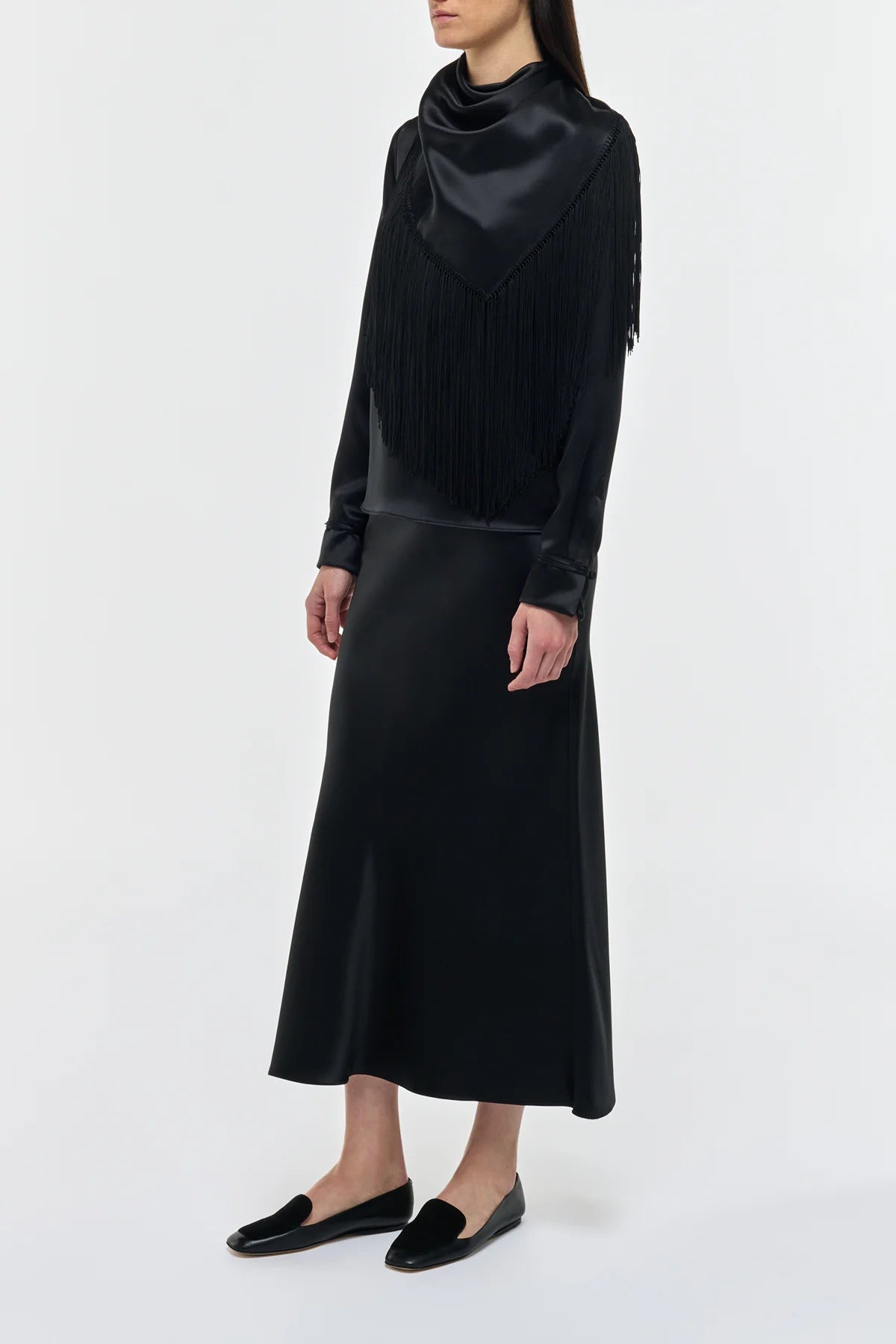 Frei Maxi Skirt in Black Silk Satin